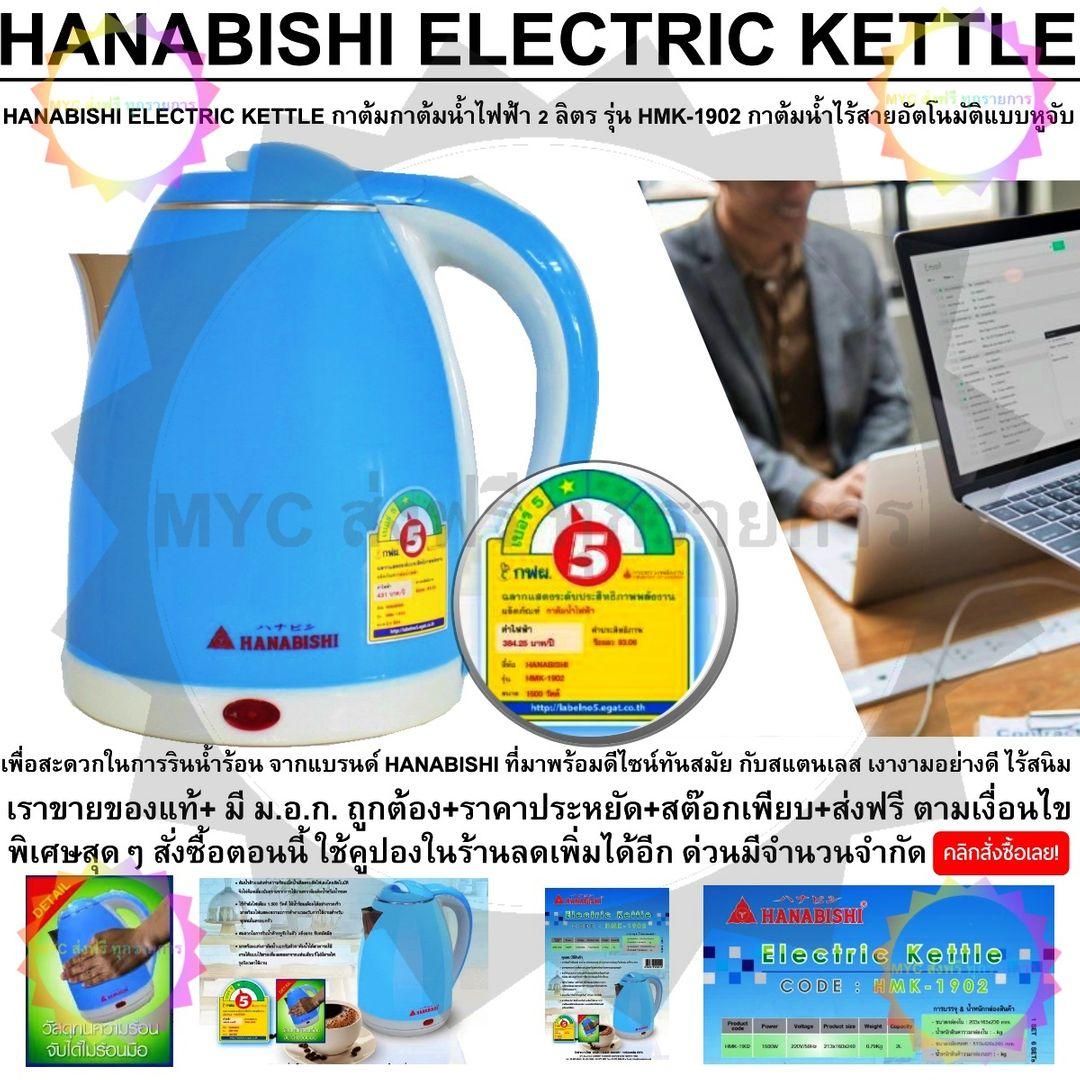 - HANABISHI ELECTRIC KETTLE กาต้มกาต้มน้ำไฟฟ้า 2 ลิตร รุ่น HMK-1902 กาต้มน้ำไร้สายอัตโนมัติแบบหูจับ