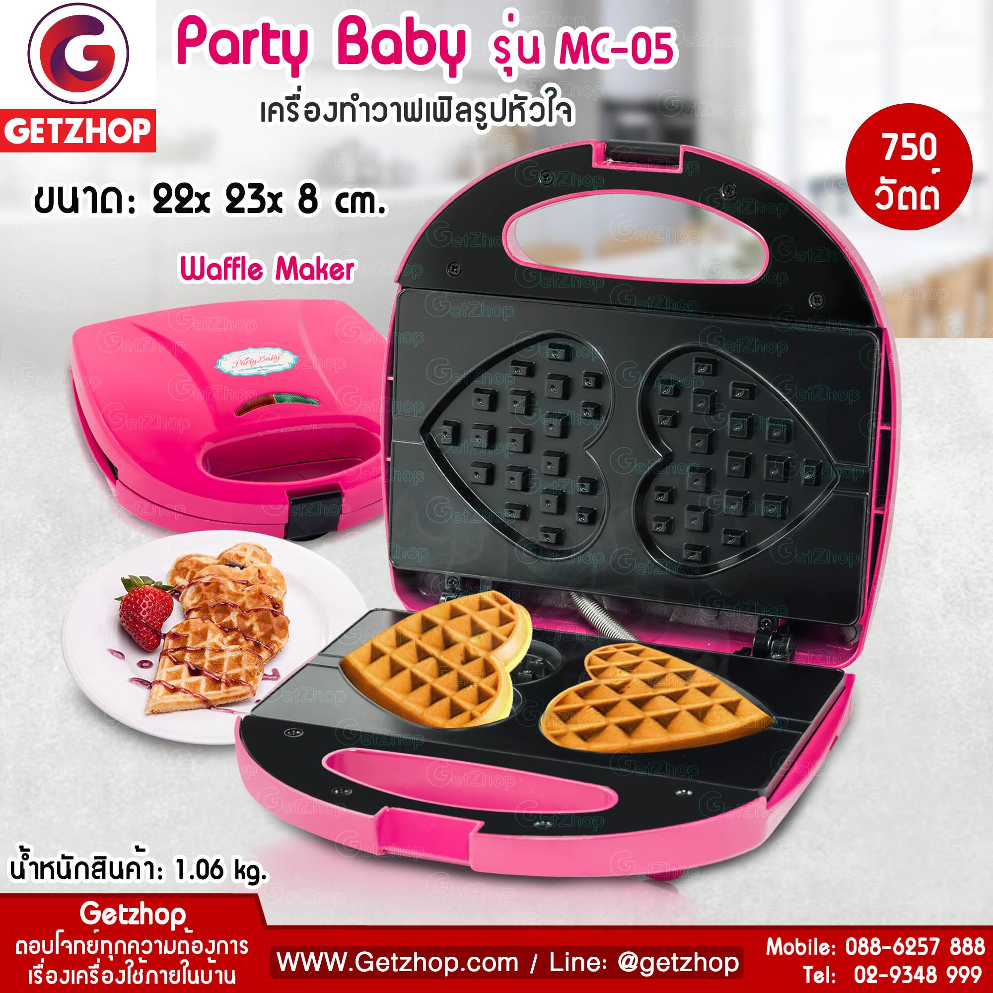 - เครื่องทำวาฟเฟิล คุณภาพ จาก Party baby เครื่องทำวาฟเฟิลรูปหัวใจ รุ่น MC-05 สามารถทำวาฟเฟิลได้ 2 ชิ้นในเวลาเดียวกันได้อย่างมีประสิทธิภาพ